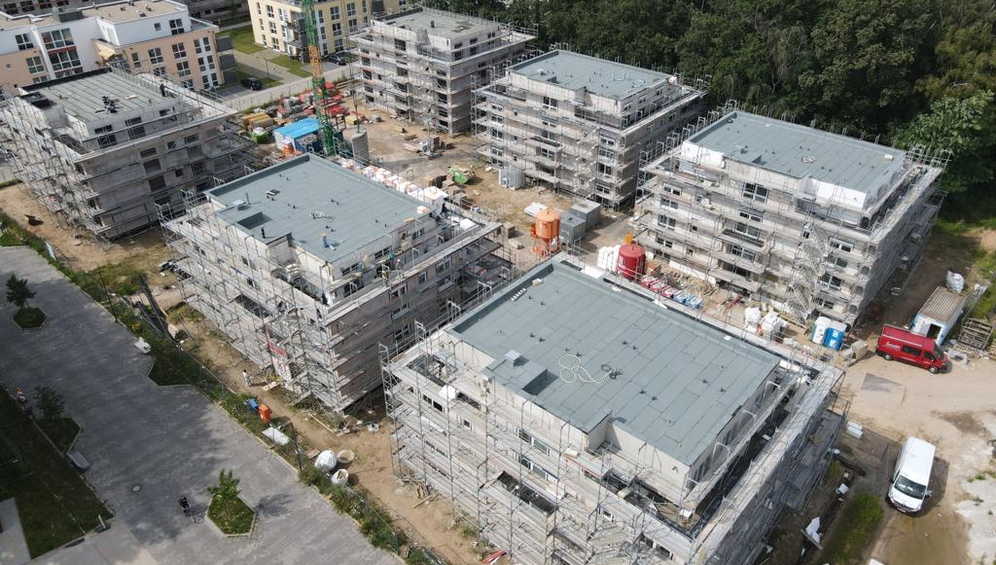 Die Rohbauarbeiten aller 6 Häuser in Emmerich am Rhein sind bereits abgeschlossen. Die Fenster wurden ebenfalls bereits bei 4 Häusern eingesetzt und damit schreitet nun der Innenausbau voran. Auch die Außenfassaden erhalten z. T. schon ihre Dämmung und den Putz. In den nächsten Schritten wird zudem auf den Flachdächern die Photovoltaik-Anlage installiert. Damit erwarten wir die Fertigstellung der ersten 44 Wohneinheiten zum Anfang des Jahres 2022. Die ersten Wohnungsbesichtigungen für die Vermietung sind ebenfalls für das erste Quartal vorgesehen. In jedem Haus entstehen jeweils 5 Zweizimmerwohnungen und 6 Dreizimmerwohnungen. Alle Wohnungen sind barrierearm und mit dem Fahrstuhl zu erreichen.